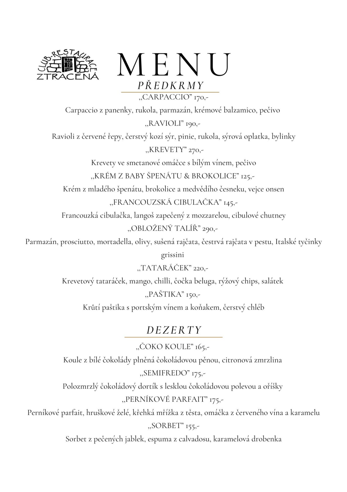 tel: +420 777 120 931 - mail: info@restauraceztracena.cz