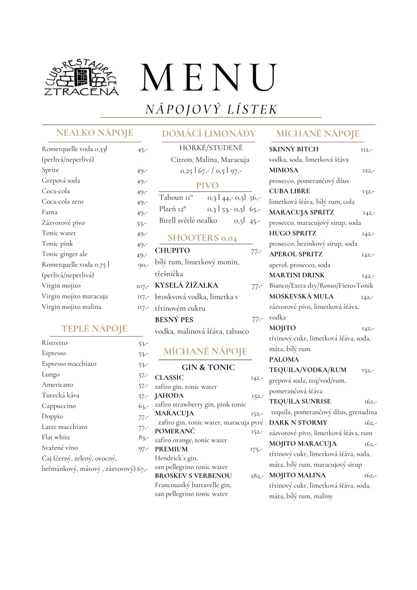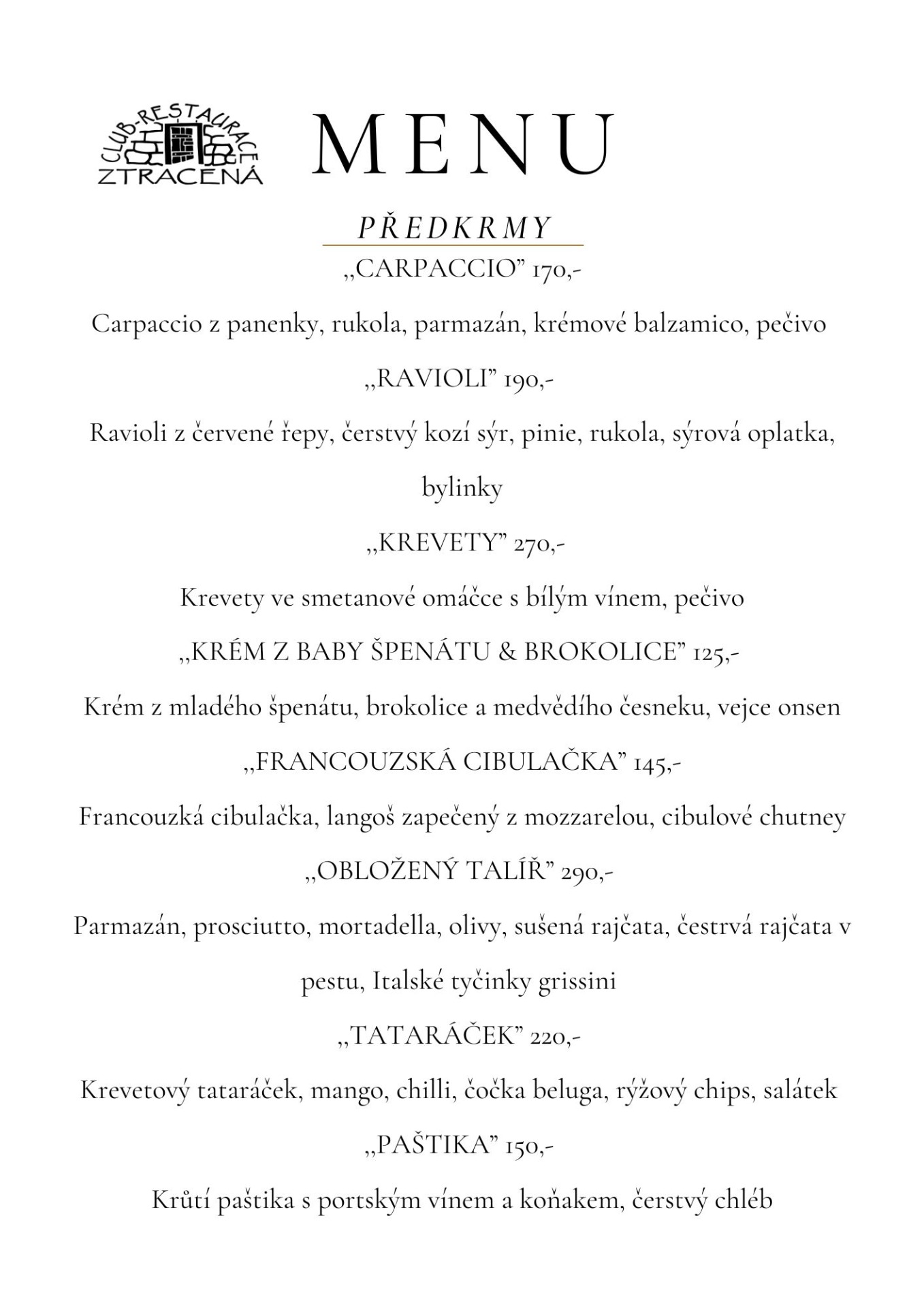 tel: +420 777 120 931 - mail: info@restauraceztracena.cz